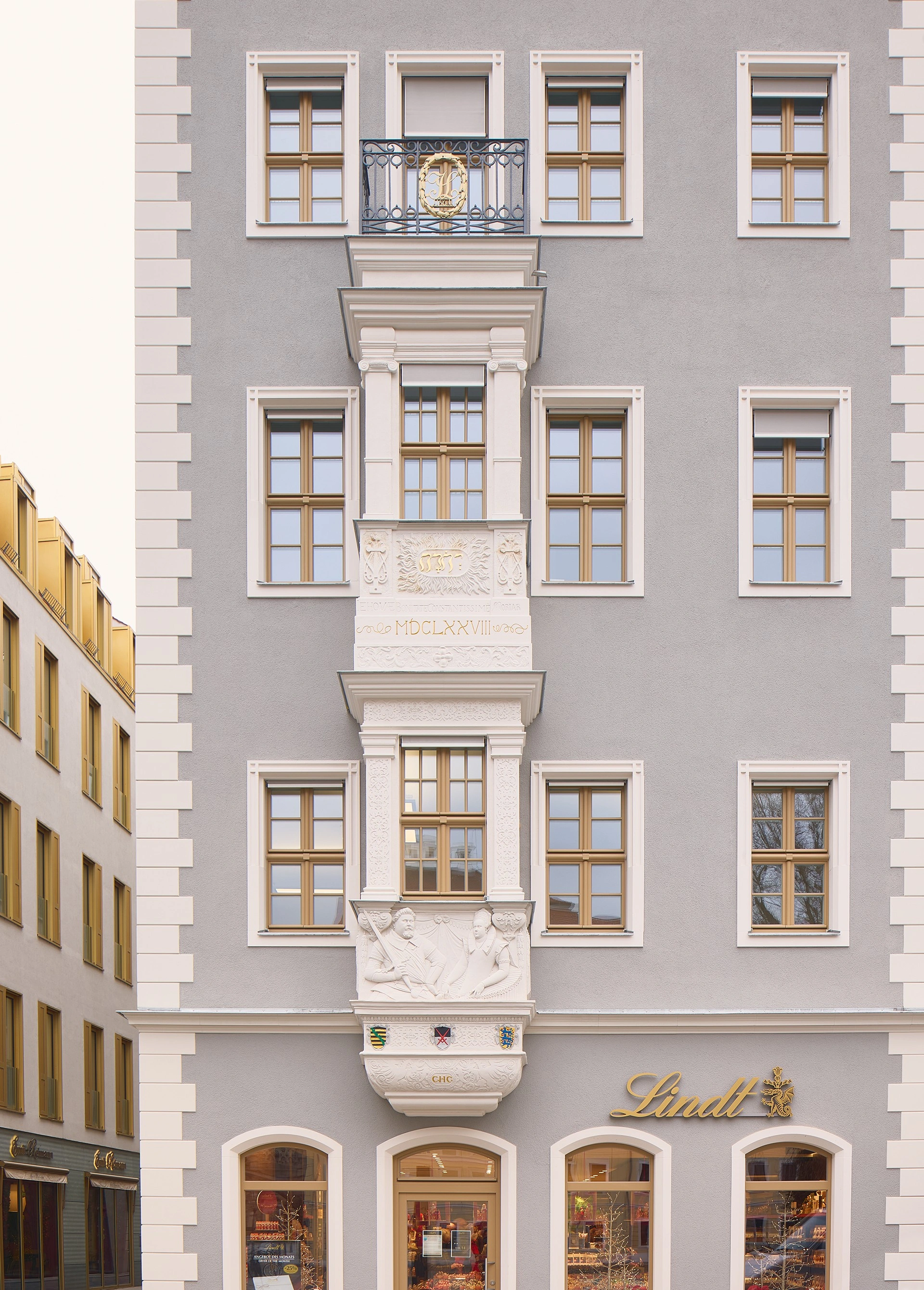 Entlang der Schlossstraße, Sporer- und Schlössergasse entstanden hochwertige Ladeneinheiten. Visá-Vis des Kulturpalastes auf der Gebäudesüdseite - entlang der Rosmaringasse - ist bereits Gastronomie eingezogen. Das Motiv des ehemaligen Durchhauses wurde mit seinen Zugängen zu Schlossstraße und Schössergasse und dem offenen Innenhof mit stirnseitig abschließender Arkadengalerie wiederhergestellt.