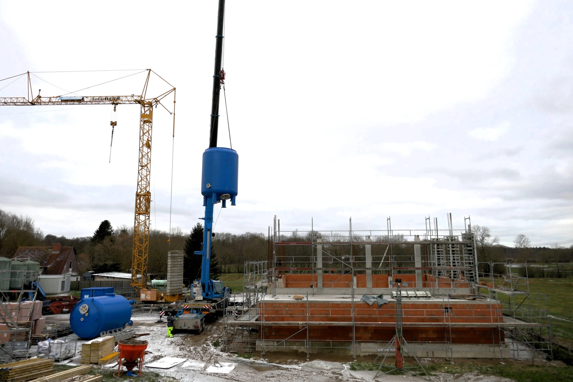 Ab Sommer 2021 wurde der Ersatzneubau direkt neben dem bestehenden Wasserwerk geplant. Das neue Konzept setzt auf eine zweistraßige Aufbereitungsanlage: Die erste Filterstufe besteht jeweils aus zwei Filterkesseln, gefolgt von einem dritten Kessel in der zweiten Stufe. Ergänzt wird die Anlage durch eine technische Sauerstofferzeugung, die aufgrund der hohen Methankonzentration im Rohwasser notwendig ist.