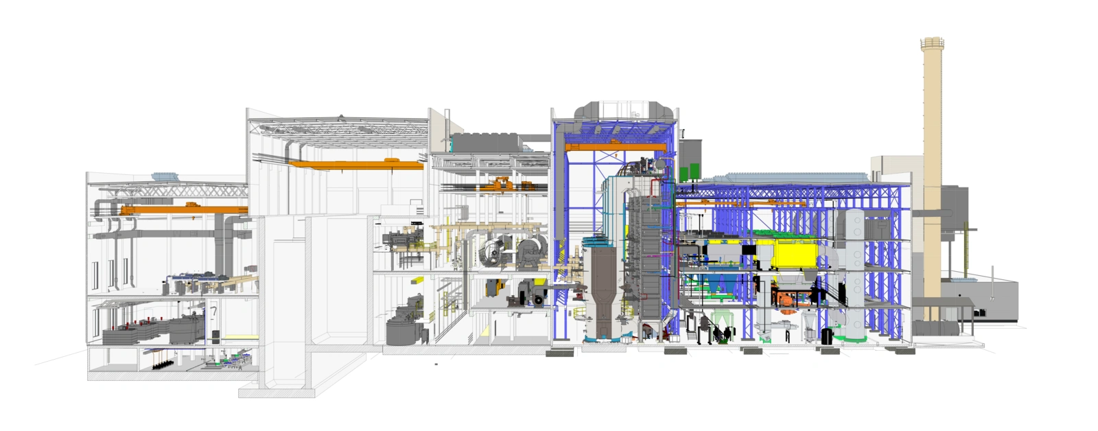 Bereits zu Planungsbeginn einigten sich WTE und IPROconsult auf die Nutzung von BIM 360 als Grundlage für die parallel erfolgenden Planungen. Hierbei handelt es sich um eine Cloud-basierte Plattform für teamübergreifendes Arbeiten im Bauprojektmanagement, die speziell auf die Bedürfnisse von Architekten, Ingenieuren und anderen Projektbeteiligten abgestimmt ist. Alle Projektinformationen und -daten liegen in einem zentralen Arbeitsbereich. Das Modell der Klärschlamm-Verwertungsanlage wurde in fünf Teil-Modelle unterteilt, die von der Tragwerksplanung so angelegt wurden, dass sie unabhängig voneinander gebaut werden können. Vier Teile werden in Stahlbeton-Skelettbauweise entstehen, die Verbrennungshalle als komplette Stahlkonstruktion.