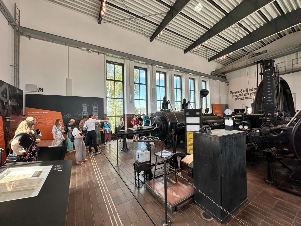 Besichtigt wurden dabei auch Bereiche, die im normalen Museumsbetrieb nicht zugänglich sind – bis hinauf zum Förderturm, weshalb ein wachsames Auge auf den Zusammenhalt der Gruppe gefragt war.