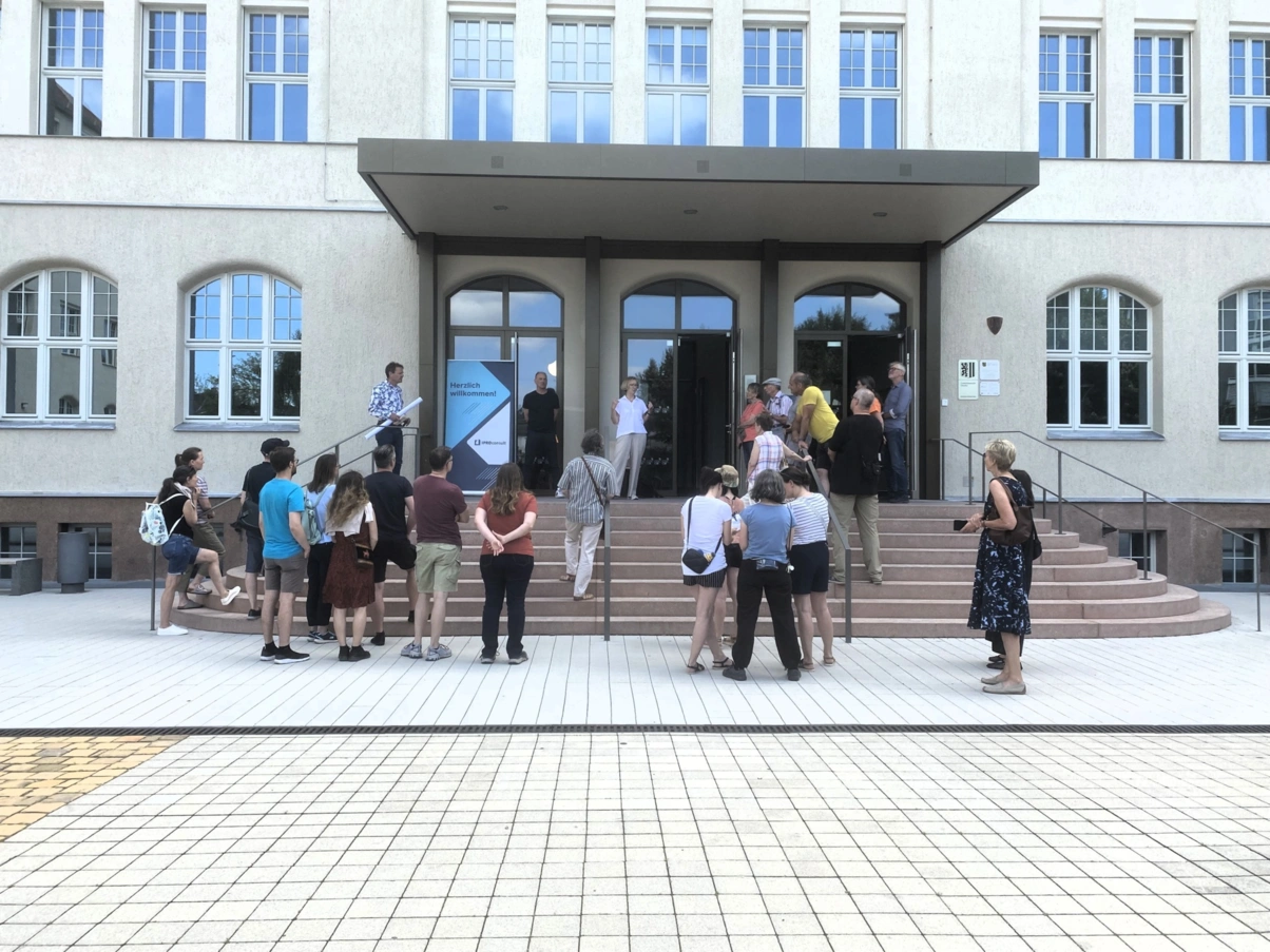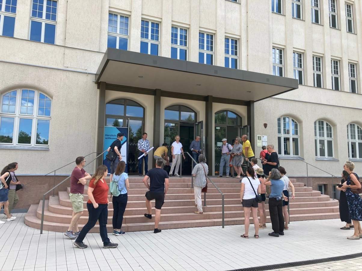 Im Gymnasium Dresden-Cotta nutzten rund 40 interessierte Besucherinnen und Besucher die Gelegenheit, das umfassend sanierte Schulgebäude kennenzulernen und dabei zahlreiche Fragen zu stellen. Viele hatten einen persönlichen Bezug zur Schule – als ehemalige Schülerinnen und Schüler oder als Eltern bzw. Großeltern heutiger Lernender.
