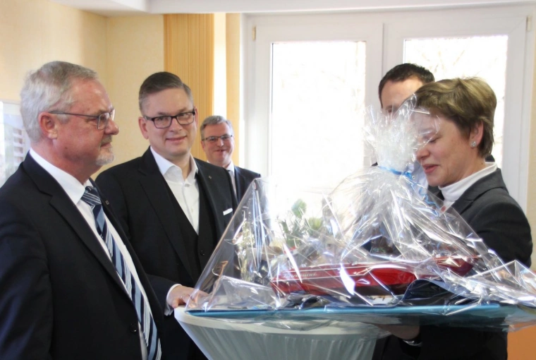 Umweltminister Jörg Vogelsänger besichtigt die Bauarbeiten am Hartmannsdorfer Wehr