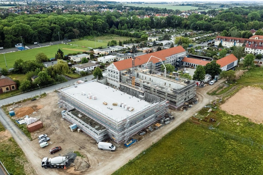 Hauptgebäude, Verbindungsbau und Sporthalle werden gerade im sächsischen Riesa saniert und zum Teil neu errichtet, um „Sachsens modernste Schule“ zu schaffen, wie es Schulleiter Jürgen Gläsel prophezeit. IPROconsult verantwortet das Projekt als Generalplaner. Planungsbeginn war 2017, 2021 sollen Schulgebäude und Sporthalle wieder von den Schülerinnen und Schülern genutzt werden. Für die Bildungsgebäude rechnet die Riesaer Stadtverwaltung mit Kosten von 11,5 Millionen Euro. Dazu kommen noch einmal 5,8 Millionen Euro für die neue Turnhalle.