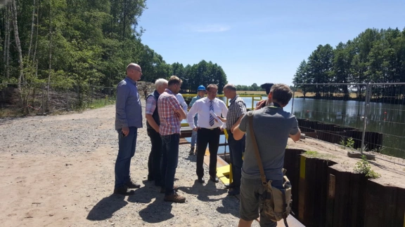 Umweltminister Jörg Vogelsänger besichtigt die Bauarbeiten am Hartmannsdorfer Wehr