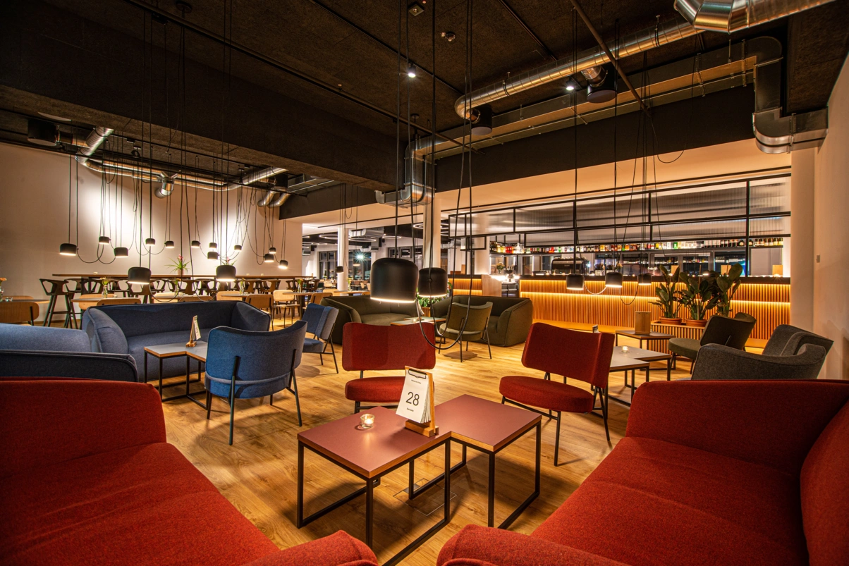 Das Gebäude enthält zusätzlich eine Aufzugsanlage. Die Obergeschosse werden ausschließlich für die Beherbergung genutzt. Es sind in Summe 104 Doppelzimmer, davon zehn barrierefreie Zimmer über alle Etagen sowie ein rollstuhl-gerechtes Zimmer im Erdgeschoss. Die Zimmer im dritten Obergeschoss haben einen zusätzlichen Vorraum mit