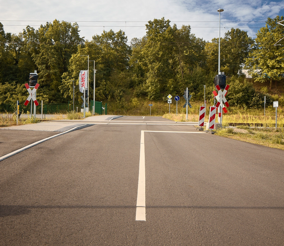 - 1.600 m Gleisanlage mit 8 Weichen und gesichertem Bahnübergang