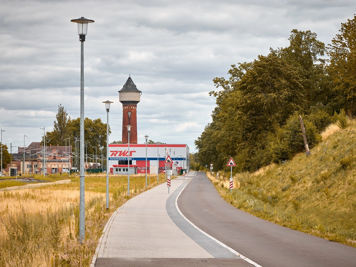 - Anbindung der Erschließungsstraße an kommunale Straßen und Bahnhofsvorplatz Elstal