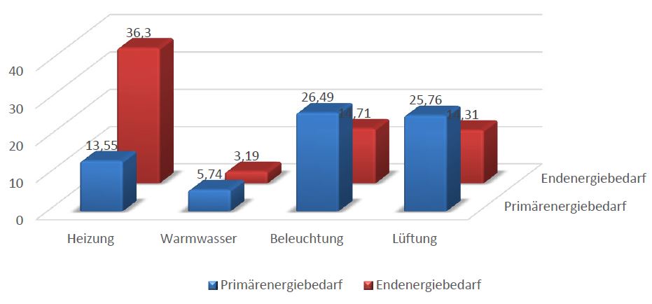 Somit können im Gewerbeteil 14% Endenergie und 10% CO2 eingespart werden.