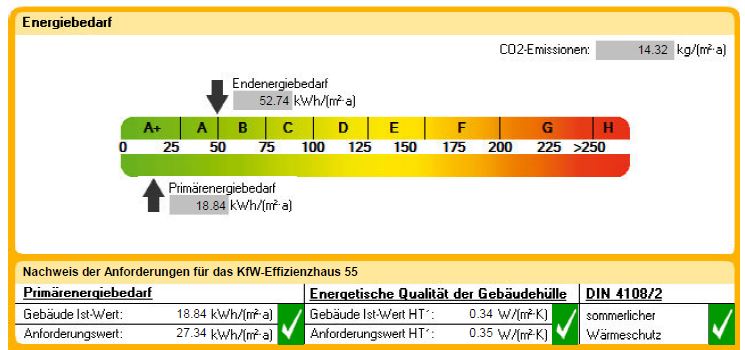 Die Mehrkosten für diese Maßnahmen fielen geringer aus als die höhe der Fördermittel, so dass die Investitionskosten trotz höherem energetischem Niveau sanken. Aus diesem Grund entschieden sich die Bauherren nach der Energieberatung für die Umsetzung des KfW Effizienzgebäudes 55 und die Beantragung der Fördermittel bei der KfW.