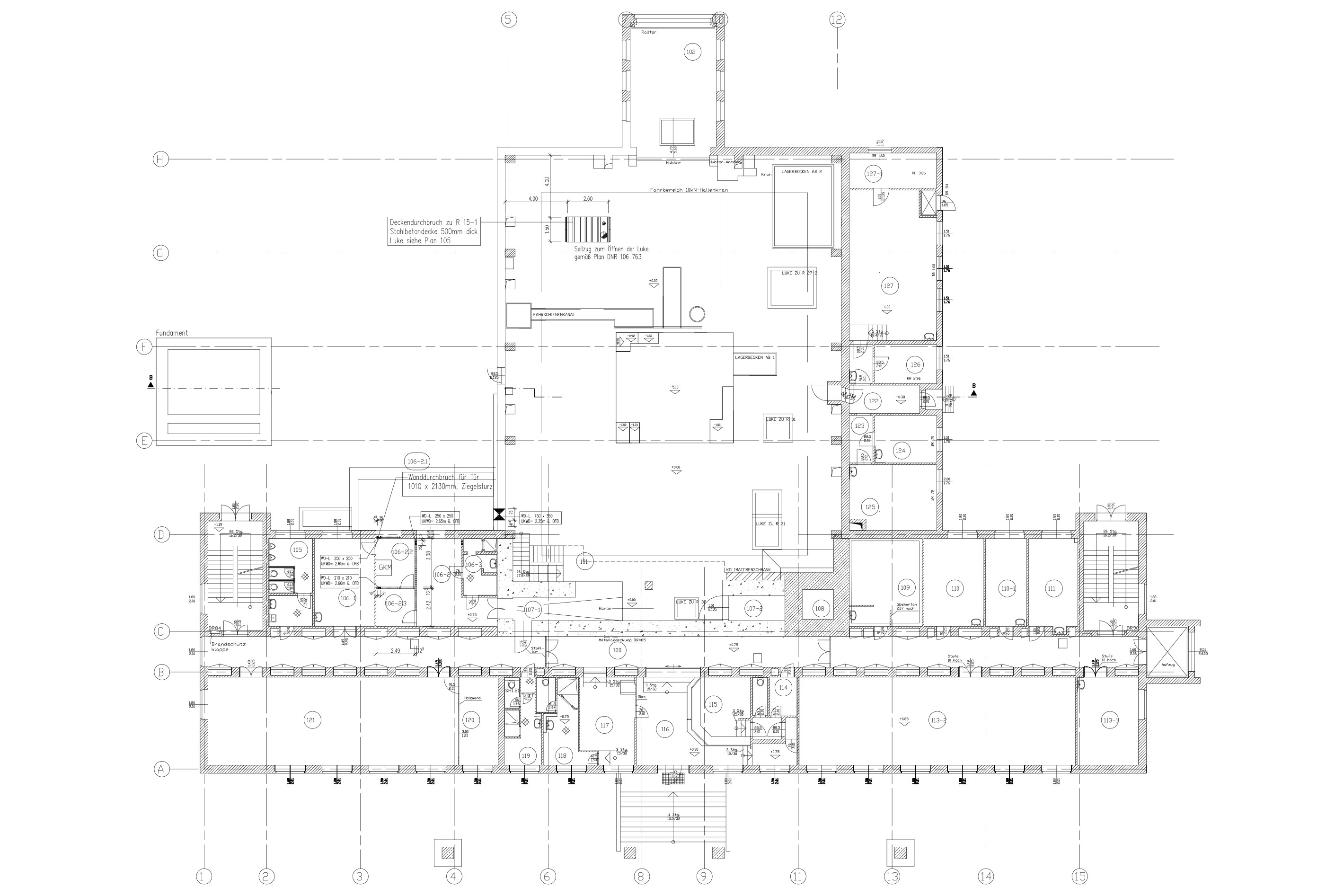 - Reaktorhalle: Krananlage, Untergeschoss, Reaktorblock