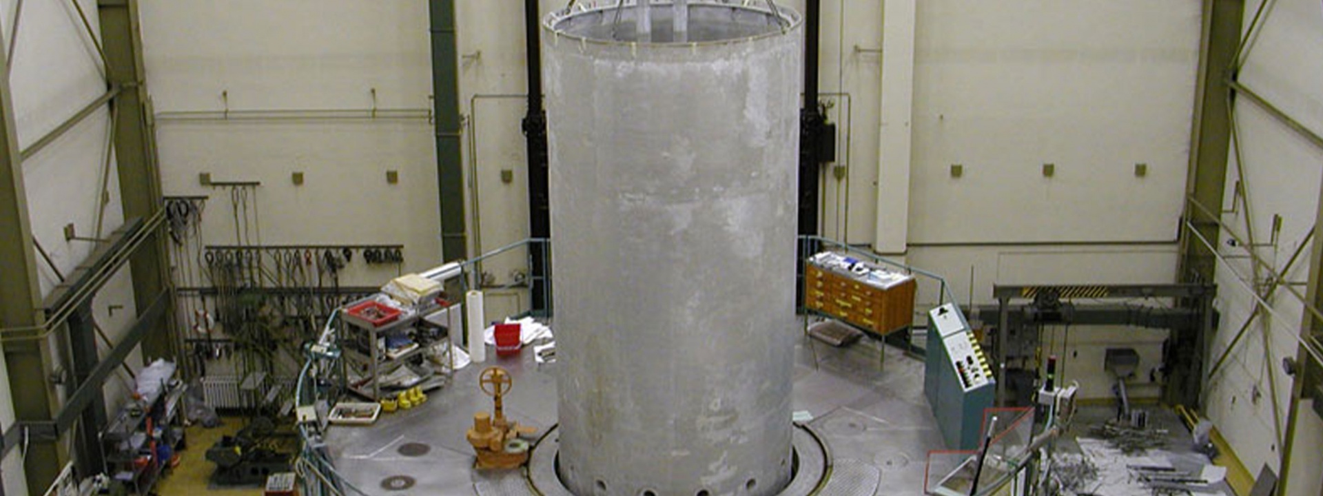 - Einhausung des Reaktorblocks innerhalb der Reaktorhalle: Stahlkonstruktion mit Krananlage