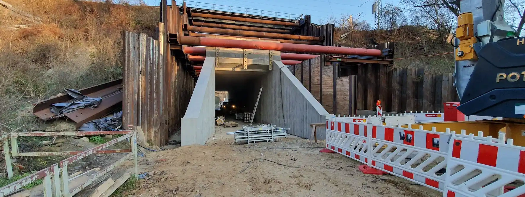 IPROconsult hat vollumfänglich die Bearbeitung der Leistungsphasen 4 und 5 für dieses Bauvorhaben übernommen. Neben der Erstellung der Genehmigungsstatik sowie der Schal- und Bewehrungspläne für die Ersatzneubauten wurden auch Detailpläne für Erdung und Abdichtung aufgestellt. Besonders die Entwicklung eines Abbruchkonzeptes, bei dem Hilfsbrücken und Verbauten konstruiert und bemessen wurden, stellte im Hinblick auf die vorgegebenen Randbedingungen (Örtlichkeit, Sperrpausen, etc.) eine besondere Herausforderung dar.
