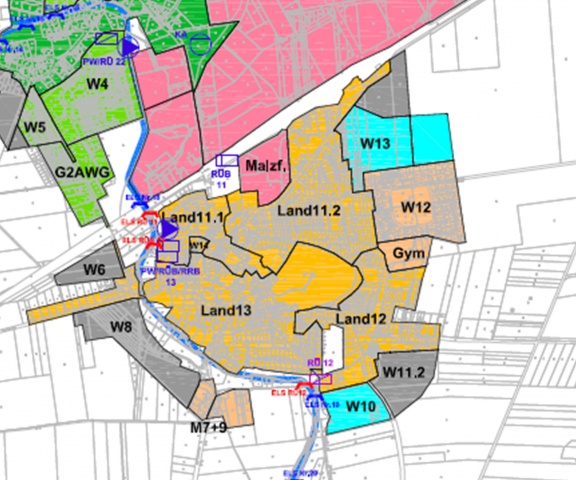 Parallel erfolgten schmutzfrachttechnische Betrachtungen. Hierfür wurden Schmutzfrachtmodelle erarbeitet, die das Gesamteinzugsgebiet der Kläranlage abbilden. Entsprechend der Gebiets- und Sonderbauwerksstruktur wurden bis zu 43 Teileinzugsgebiete definiert und mit den entsprechenden Parametern (Einwohnerwerte, spezifischer Abwasseranfall, befestigte Fläche, etc.) versehen.