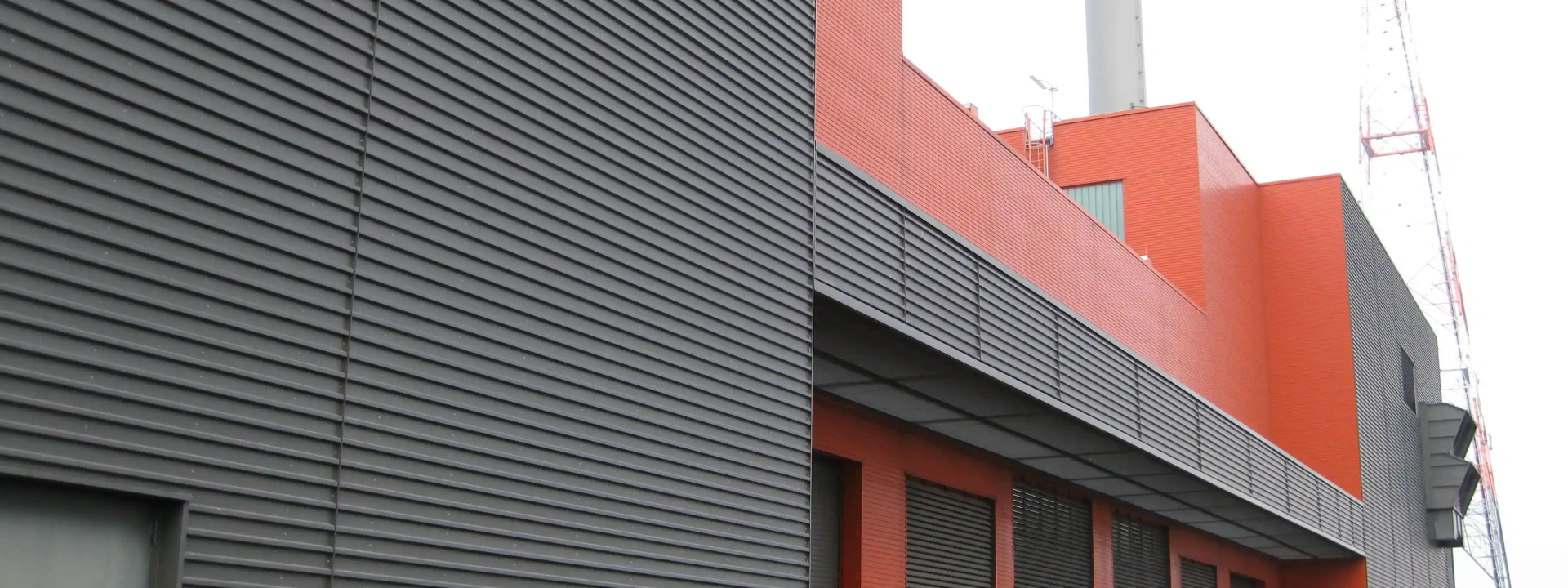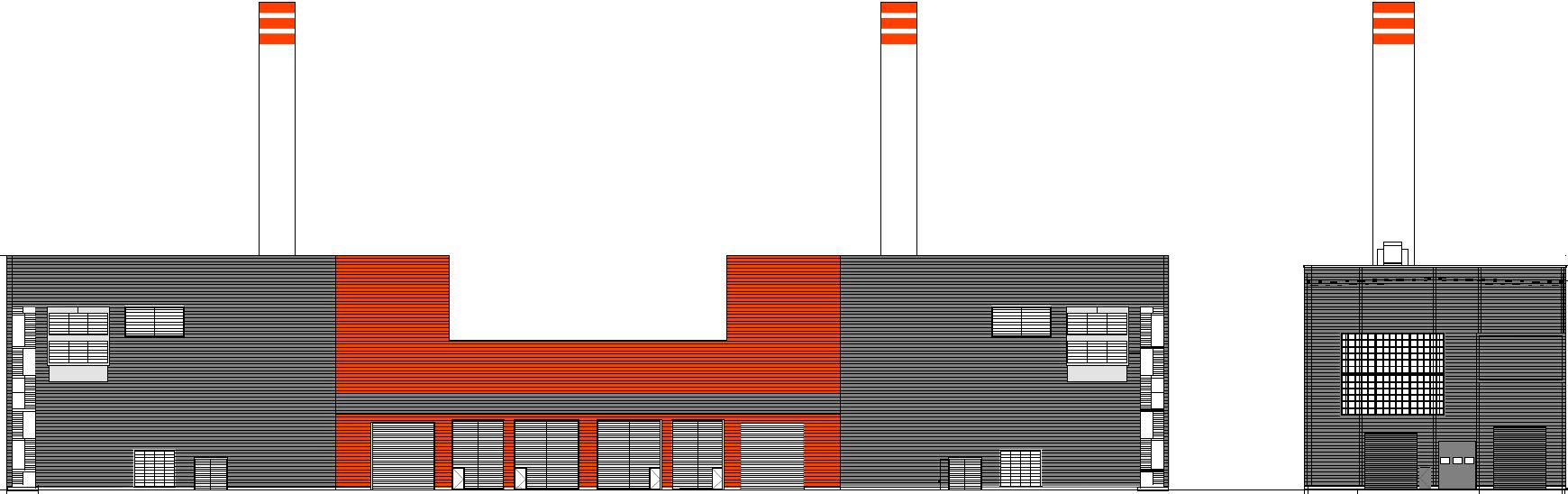 - Das Maschinenhaus als Stahlbauhalle, die sich an das massive Schalthaus anlehnt und dieses überbaut.