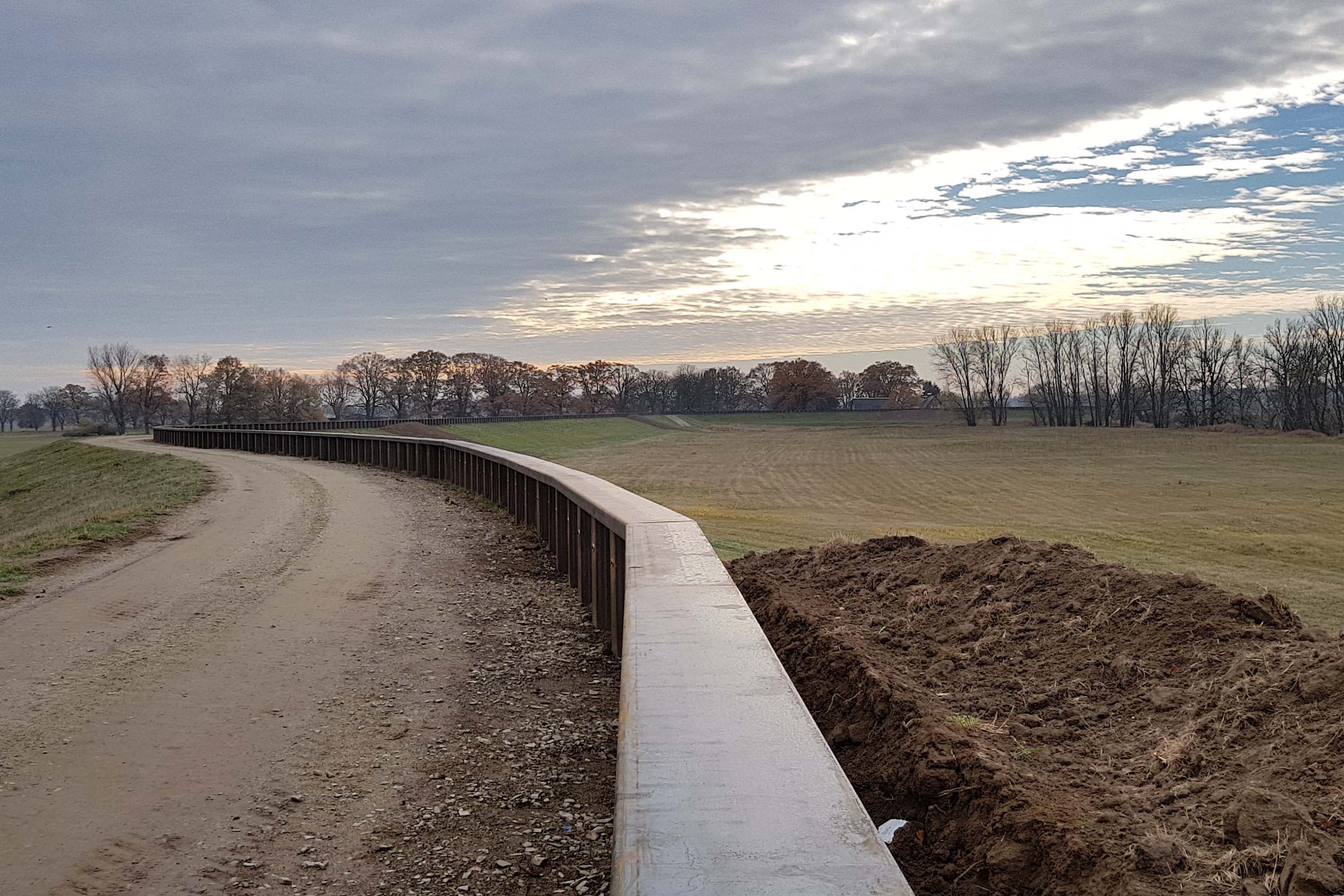 Der Deich wird bei km 63+520 und km 64+020 von landwirtschaftlichen Wegen gekreuzt. Diese sind im Bereich des Deichkronenkontrollweges auf das Niveau der Spundwandoberkante anzuheben. Die Rampen der Deichauffahrten sind jeweils anzupassen. Als Abdeckung der Spundwände ist ein Stahlspundwandholm vorgesehen.