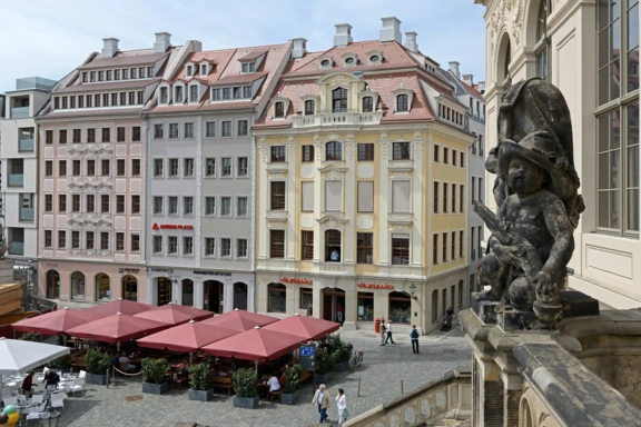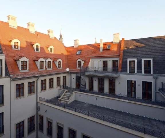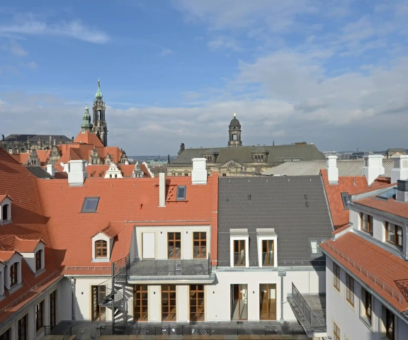 Das markanteste Haus wird das einstige Wohnhaus vom Hofjuwelier Dinglinger werden. Es soll originalgetreu wieder errichtet werden. Hier entsteht ein ganz besonderes Highlight – eine Maisonette unter dem Dach mit direktem Blick auf die Dresdner Frauenkirche von einem reizvollen Barockbalkon aus. Im Ergebnis der archäologischen Grabungen wird der Keller Dinglinger Haus erhalten und in die Gastronomienutzung im Erdgeschoss mit einbezogen.