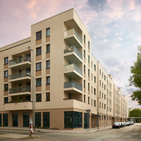 [Es finden sich Entwürfe der Architekturbüros Knerer und Lang sowie wörner traxler richter als Fassaden der Gebäude 4 und 5 im Bauantrag wieder.]
