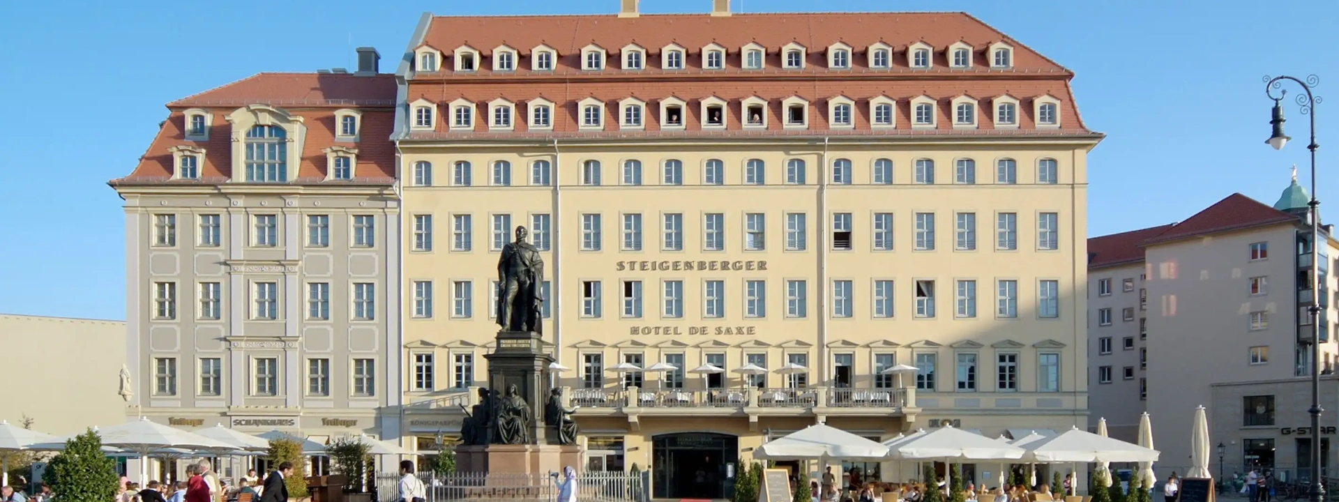 Eines der berühmtesten Quartiere rund um die Dresdner Frauenkirche ist das „Hotel de Saxe“. Das Geviert wurde in großen Teilen wieder nach historischem Vorbild aufgebaut. Hinter der Fassade erwartet den Gast ein 185 Zimmer Vier-Sterne-Hotel.