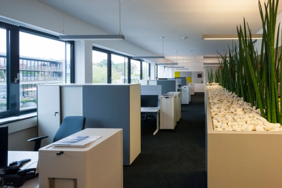 Das Gebäude bietet Platz für 150 Büro-Mitarbeiter und erlaubt flexible Büro-Nutzungen (Zellenbüros, Großraum-Büros). Neben den Büro-Nutzungen inkl. den erforderlichen Nebenfunktionen wie z. B. Kopier- und Lagerräumen gibt es auch Pausen- und Aufenthaltsbereiche sowie Räume für kreativen Austausch. Zusätzlich zu der reinen Büro-Nutzung ist ein Schulungszentrum integriert, das neben internen Schulungen/Präsentationen auch an externe Nutzer fremdvermietet werden kann. Im Untergeschoss befinden sich der Fahrradkeller und die Umkleiden.
