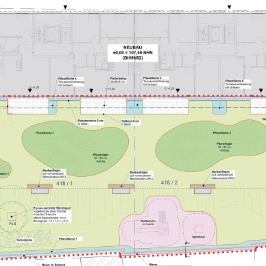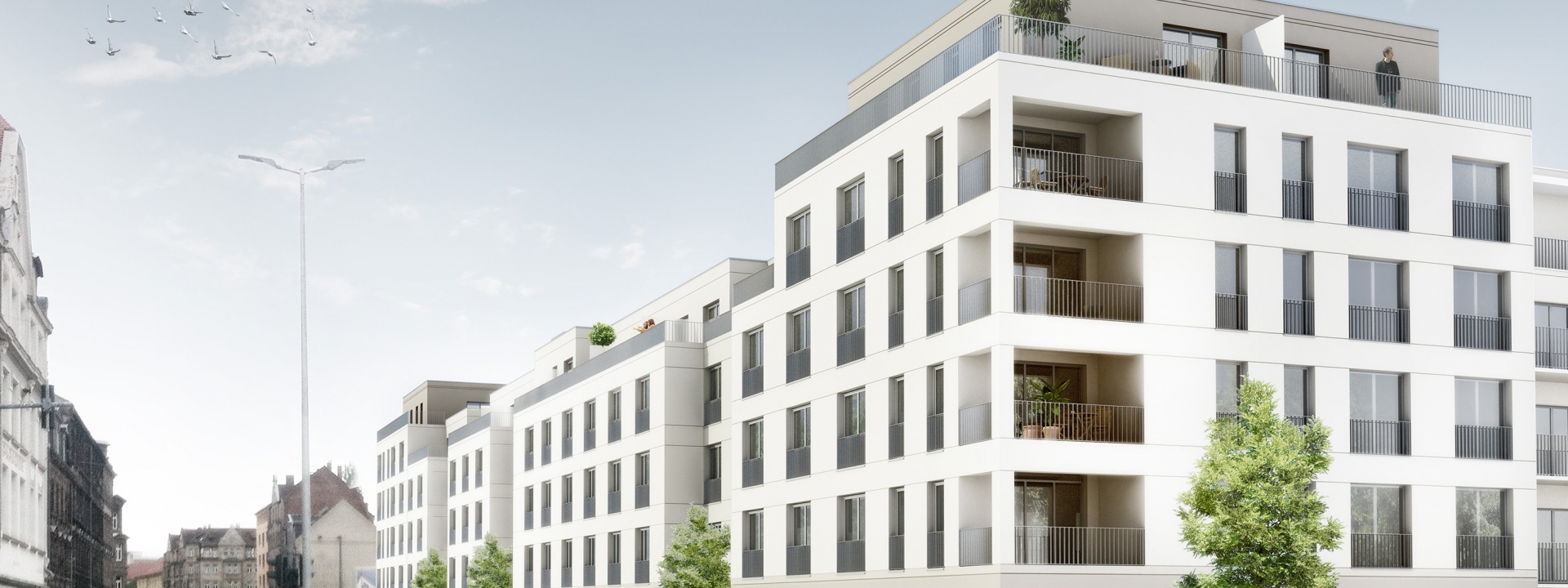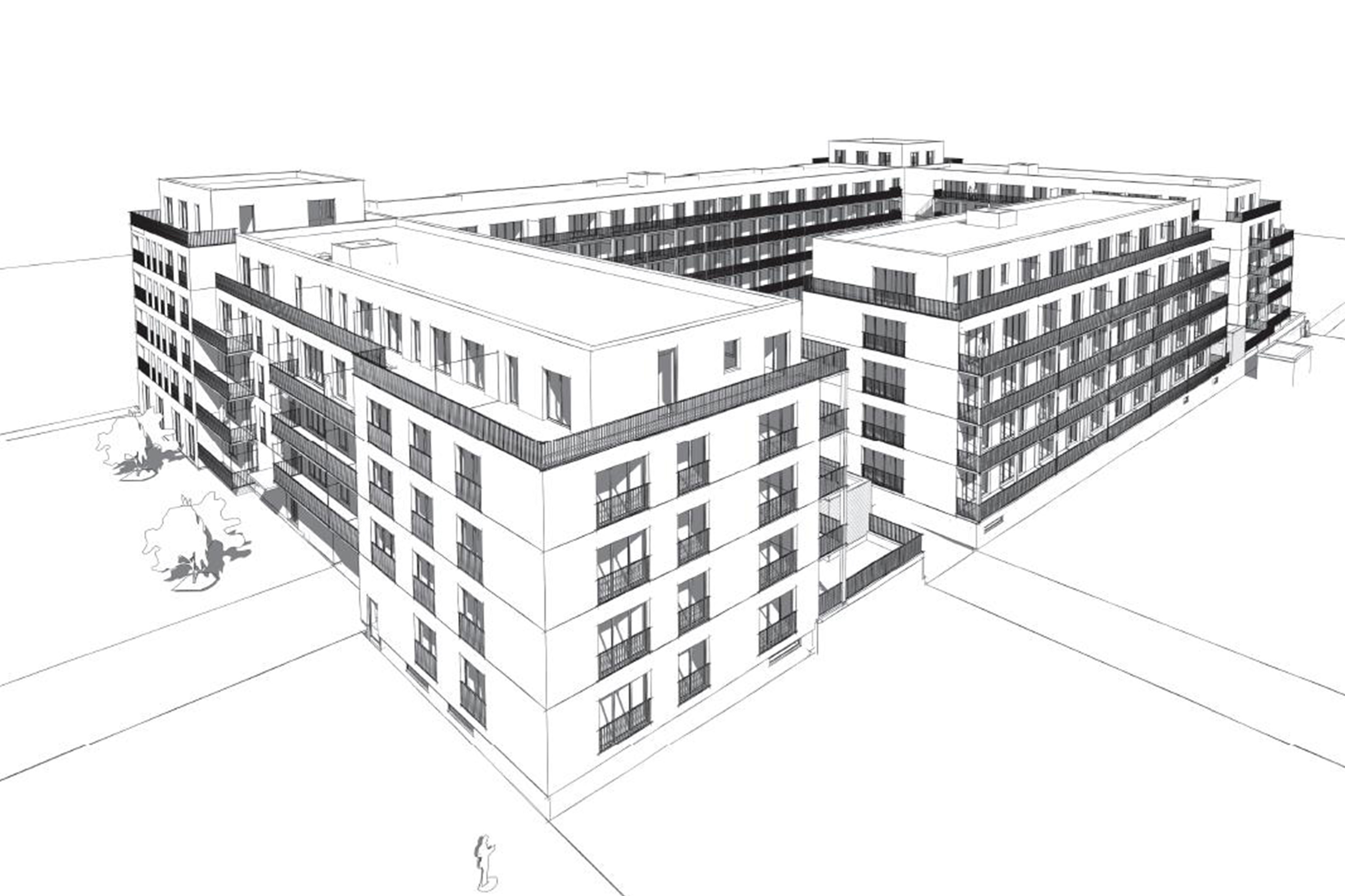 Die P&P Immobilien GmbH beauftragte IPROconsult mit der Planung des Wohnhauskomplexes mit 296 Wohnungen im KfW 70 Standard. Entlang der Schwabacher Straße erfolgt eine fünfgeschossige Bebauung mit Vor- und Rücksprüngen, welche die kleinteilige Bebauung der gegenüberliegenden Seite aufnimmt. Das Quartier besteht aus vier oberirdischen Gebäudeteilen.