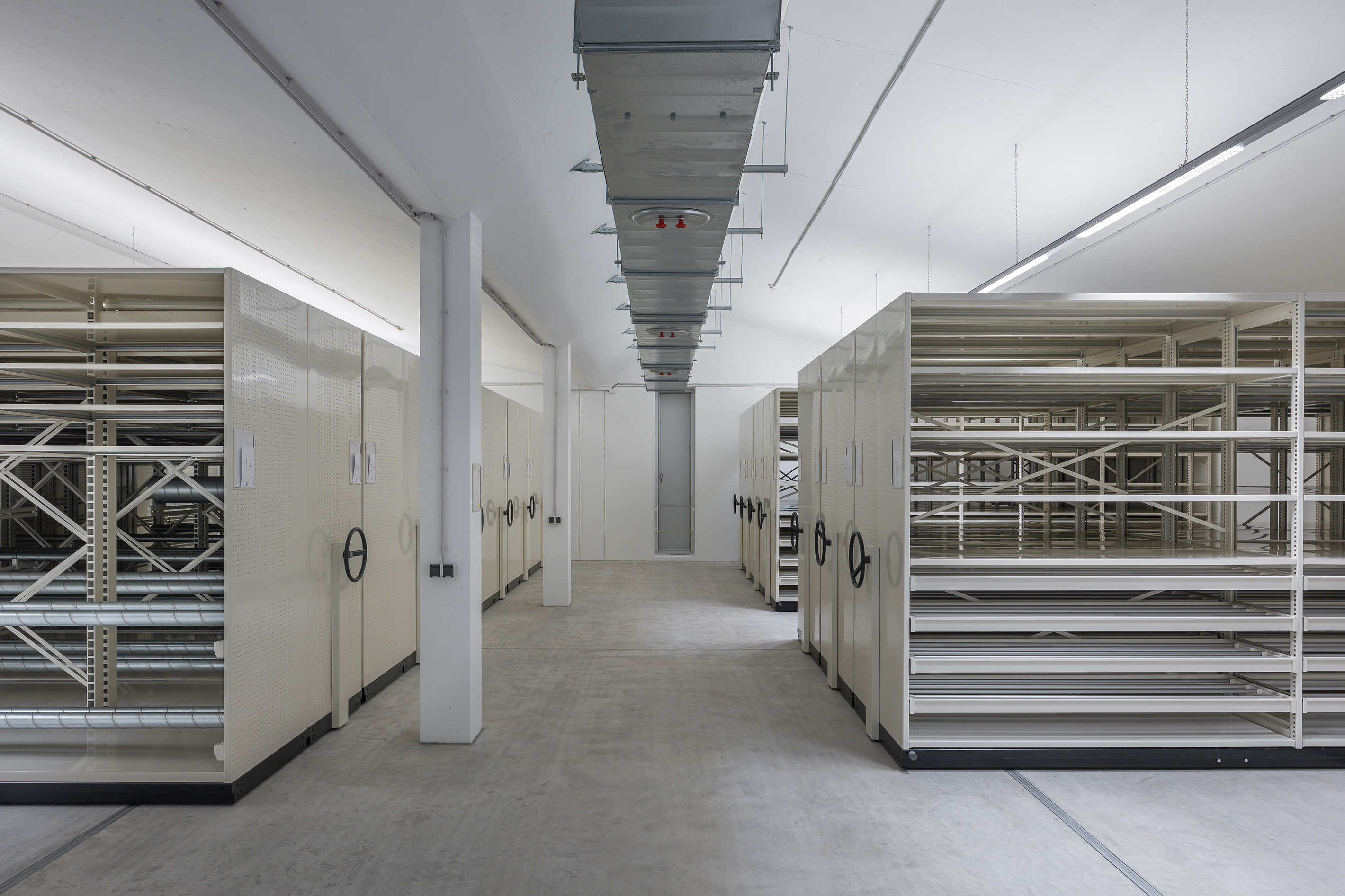 Elektro-Versorgung mittels NS-Anschluss EVU, Eigenstromversorgung als Batterieanlage für SiBe, NSHV und UV geschossweise, Sonnenschutzsystem der Fensterfassaden an der Südseite, NRA-Steuerung für RWA-Öffnungen in Fassade der Depotbereiche, Ladeplätze für Kleinförderanlagen mobil, Blitzschutz- und Erdungsanlage mit Überspannungsschutz, Beleuchtungsplanung