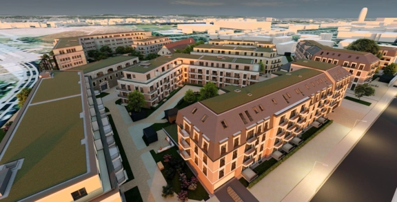 Der Bauherr, die QUARTERBACK Immobilien AG, beauftragte IPROconsult im August 2022 mit der Objektplanung ab Leistungsphase fünf. Entstehen sollen sieben neue Wohnhäuser und zwei denkmalgeschützte Gebäude, die insgesamt 322 Wohnungen beherbergen werden. Hinzu kommen acht Gewerbeeinheiten, zwei Bürogebäude und eine Kita. Im April 2024 fiel der Startschuss für die ersten Neubauten, während für die denkmalgeschützten Gebäude noch die finalen Planungen laufen.