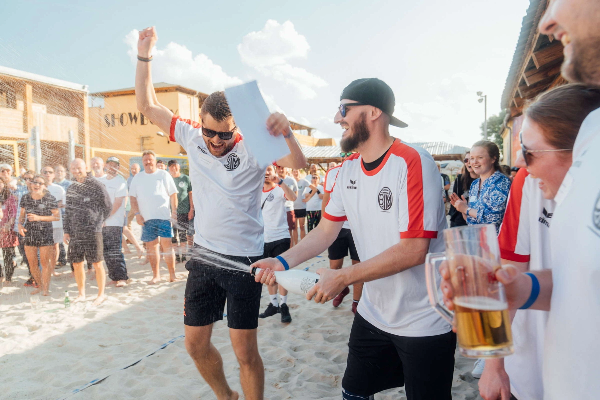 Unser Turnierleiter Frank Elsner hatte alle Hände voll zu tun, die 19 Volleyballteams auf vier Feldern zu koordinieren und für einen reibungslosen Turnierablauf zu sorgen. Es ging wie immer Schlag auf Schlag, es wurde geschmettert, geblockt und gejubelt, nicht selten auch geflucht. Am Ende standen einige Überraschungen. So hatten die wenigsten erwartet, dass im großen Finale zwei Teams der Zentralen Dienste stehen würden, könnte man sie doch fälschlicherweise eher als Schreibtischhelden denn als Sportskanonen einschätzen. Das “alteingesessene” Verwaltungschaos am Netz kämpfte gegen die "Turnierneulinge" BIM Blockbuster hartnäckig um jeden Punkt und musste sich am Ende doch geschlagen geben. Natürlich haben die meisten unserer BIM-Experten schon mehrfach am Turnier teilgenommen, nur eben in anderen Konstellationen. Und letztlich ist es der Teamgeist, mit dem man dieses Turnier gewinnt - mehr als individuelle Glanzleistungen, ganz im Einklang mit unserer Firmenphilosophie: Das Ganze ist mehr als die Summe der einzelnen Teile. Und wenn wir bei der IPRO eins können, dann das Ganze sehen!